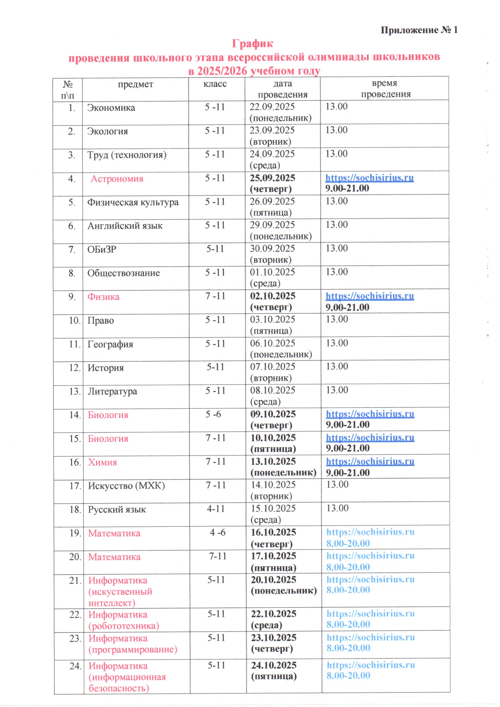 Школьный этап всероссийской олимпиады школьников 2025-2026 учебный год