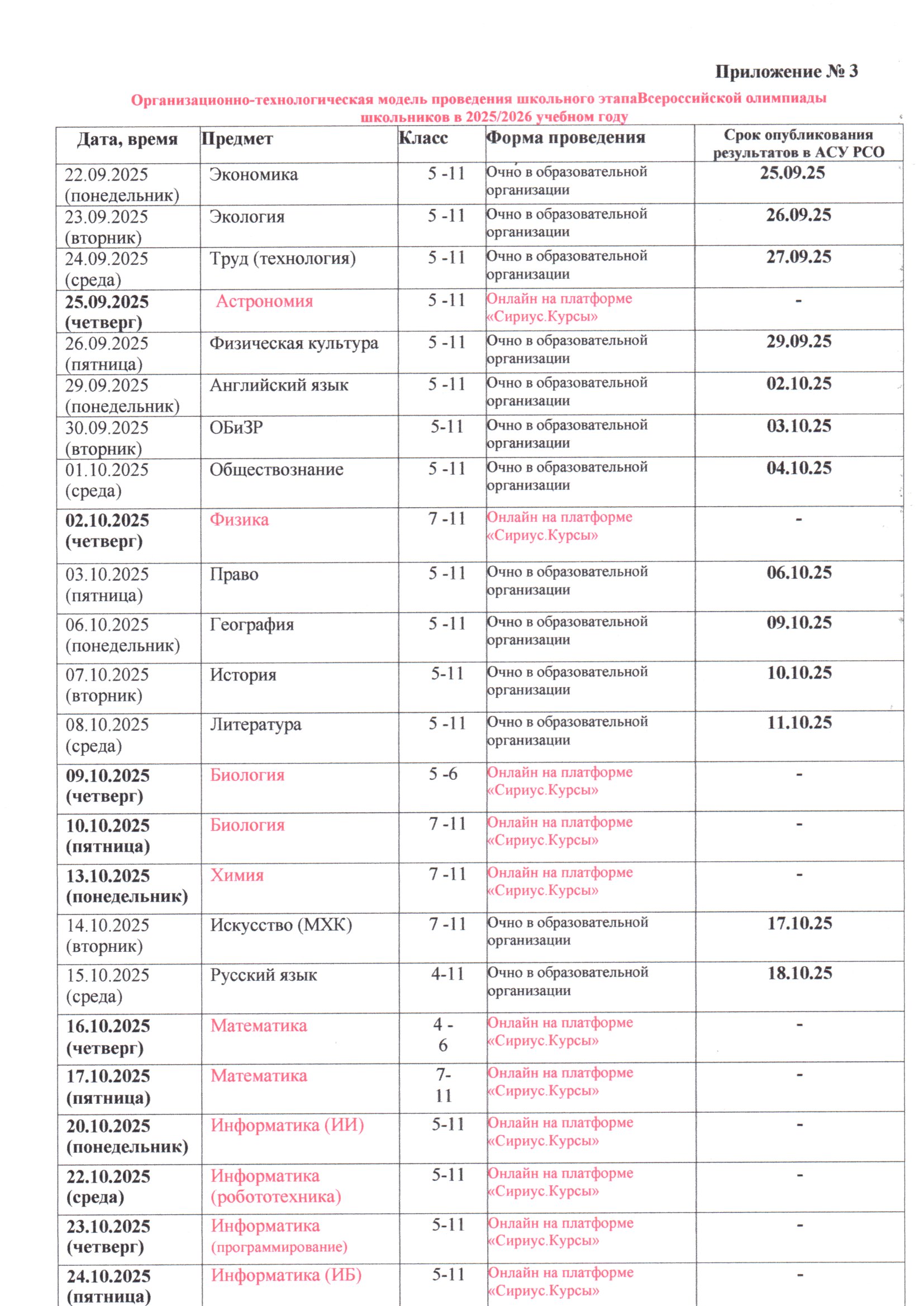 - Приказ о проведении школьного этапа ВсОШ-2025